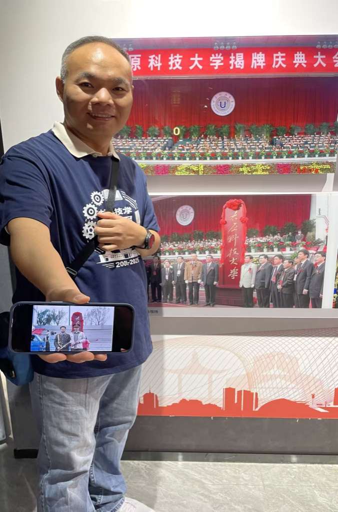 校史馆内,讲解员悉心介绍母校近年来的发展历程与成就。当看到二十年前学校活动的老照片,校友们驻足交流,与照片中的“自己”隔空“合影”。新旧影像对比间,满是岁月的感慨。