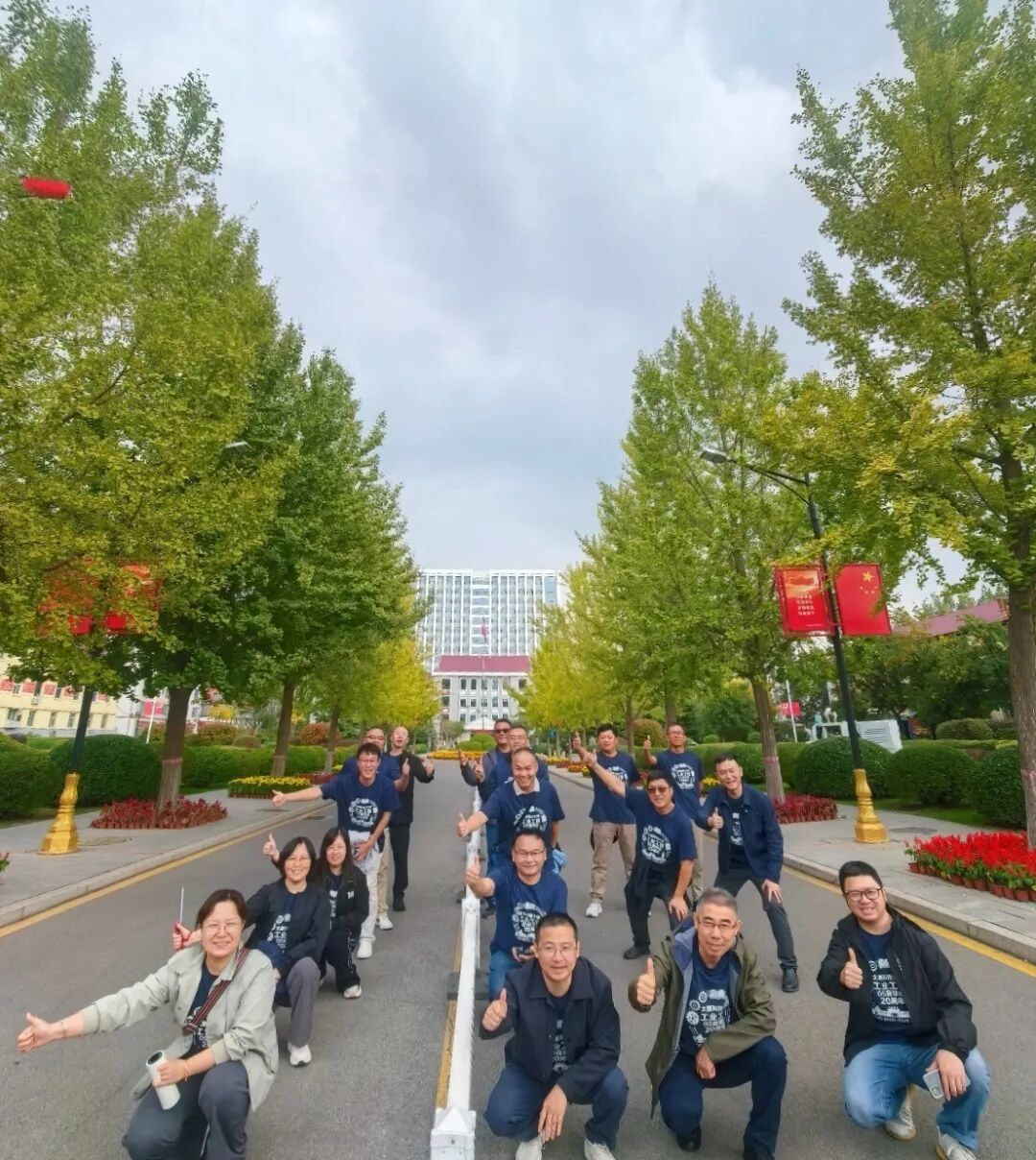 校友们身着统一纪念服饰,手举标识牌,默契摆出“IE”造型,在校园合影留念。镜头定格下这跨越二十年的珍贵瞬间,仿佛将时光拉回曾经的青春时光。