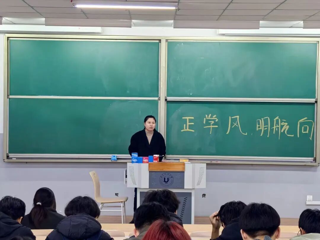 优良学风是学生成长成才的坚实基础。在“正学风,明航向”主题班会上,张艳霞老师以传统文化为纽带构建成长坐标系,通过“三维立学”,从“守规”“奋进”“防诈”三个维度,结合《孟子》《论语》《劝学》等经典篇章,深入浅出地阐释了校规校纪的价值、主动学习的意义以及防范网络诈骗的重要性,引导学生以“矩”立行,明校纪之要义 ;以“志”破“躺”,弃摆烂之惰性;以“智”辨险,筑安全之屏障。班会最后,同学们立约明志,以文化为引,锚定学习方向,共赴学风新程。